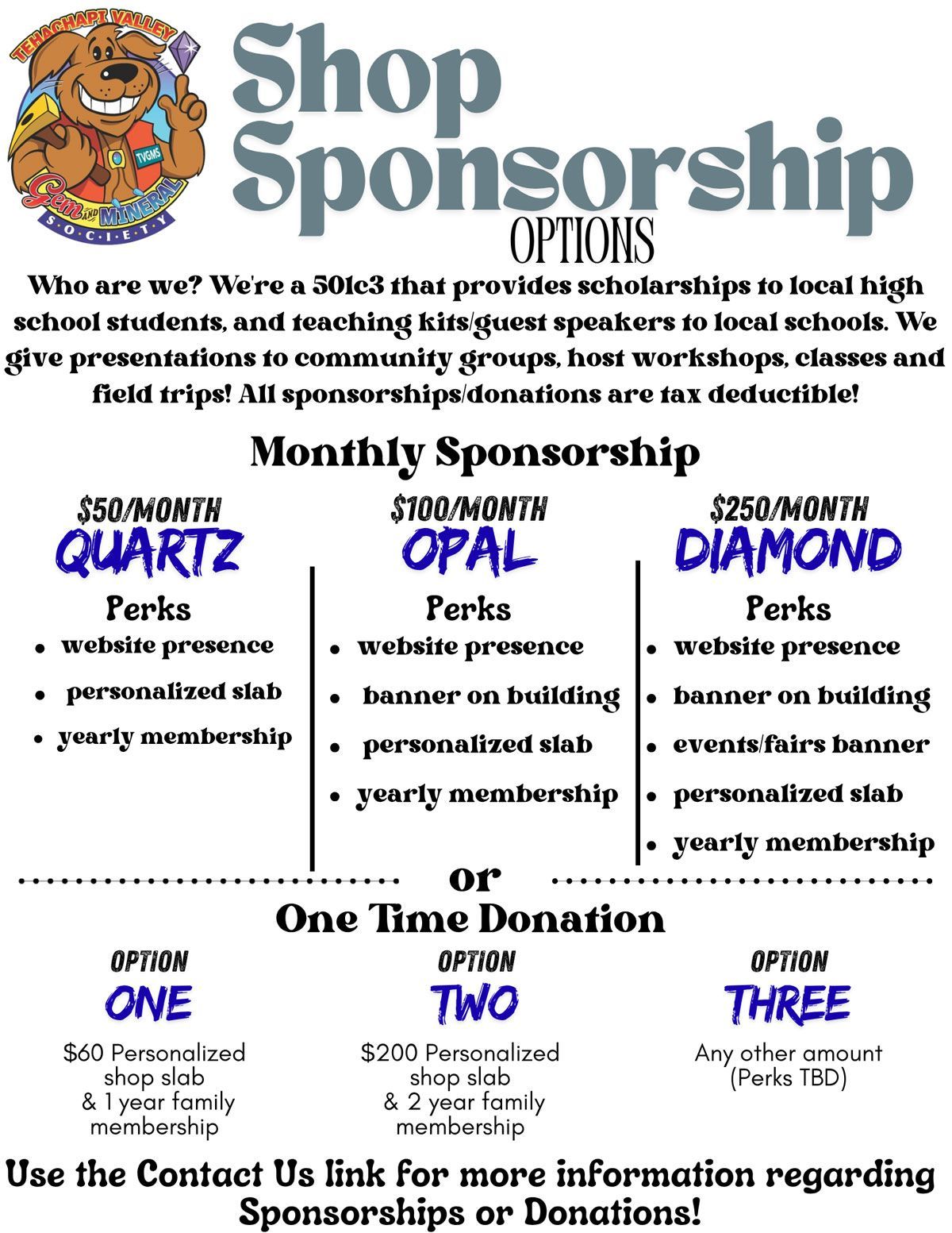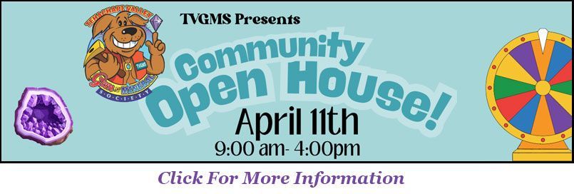 Please join us on April 11th from 9:00 am to 4:00 pm at the Tehachapi Senior Center. We have many activities for all ages including Classes, a Pet Rock Station, Displays of Fossils, Meteorites, handmade Jewelry by club members, and rock slabs and jewelry for sale. Bring the kids, they love the popular spinning wheel with many unique prizes, such as fossilized shark's teeth and ammonites, beautiful minerals and polished rocks.