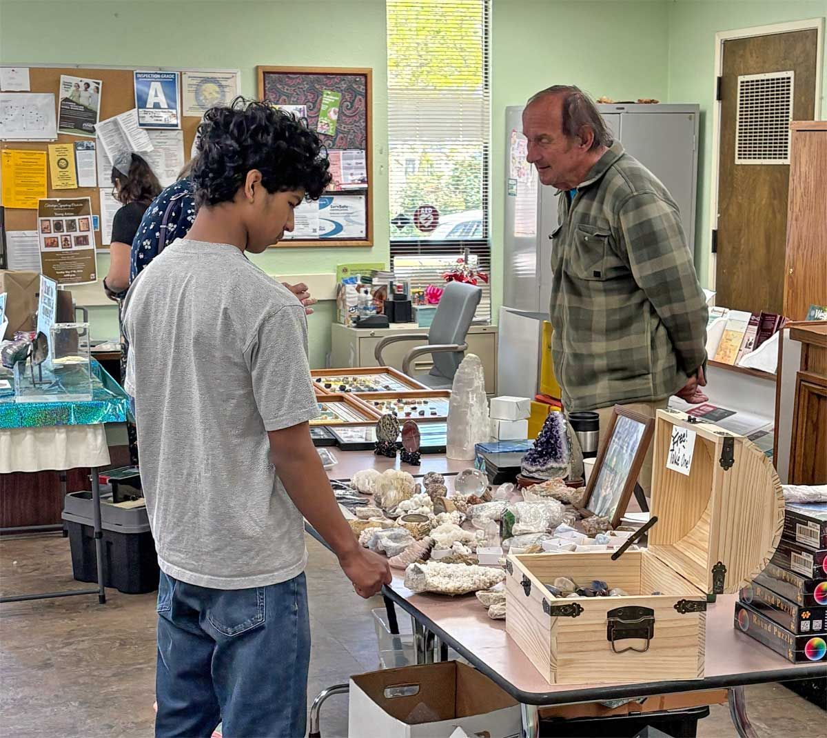 What a fun and exciting day the Open House of the TVGMS was for all who attended. The members who helped had as much fun as the visitors who came. One thing that all rockhounds seem to have in common is the desire to share the joy and wonder that these natural treasures offer. That thrill for sharing about rocks was certainly in the air at the Open House. Keep an eye open for notices about town and in the newspaper or here on the website about other upcoming events of the TVGMS. There are always fun and educational activities taking place.