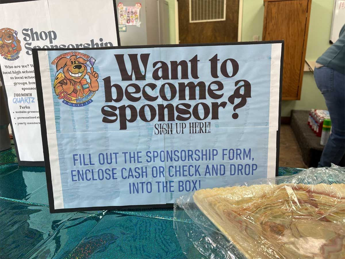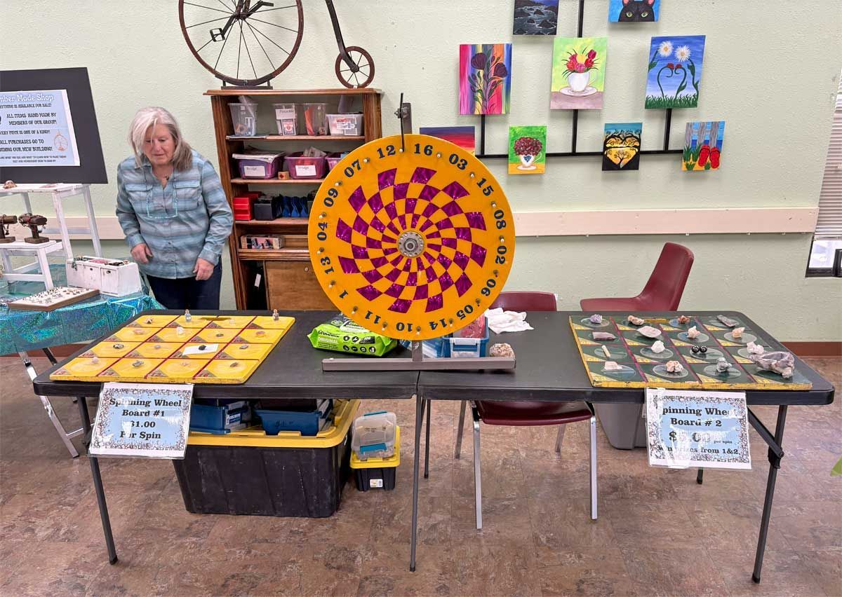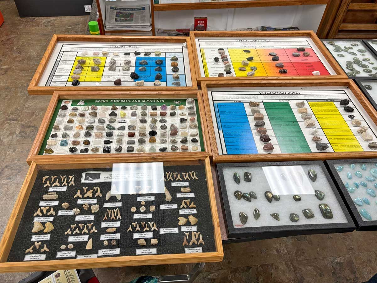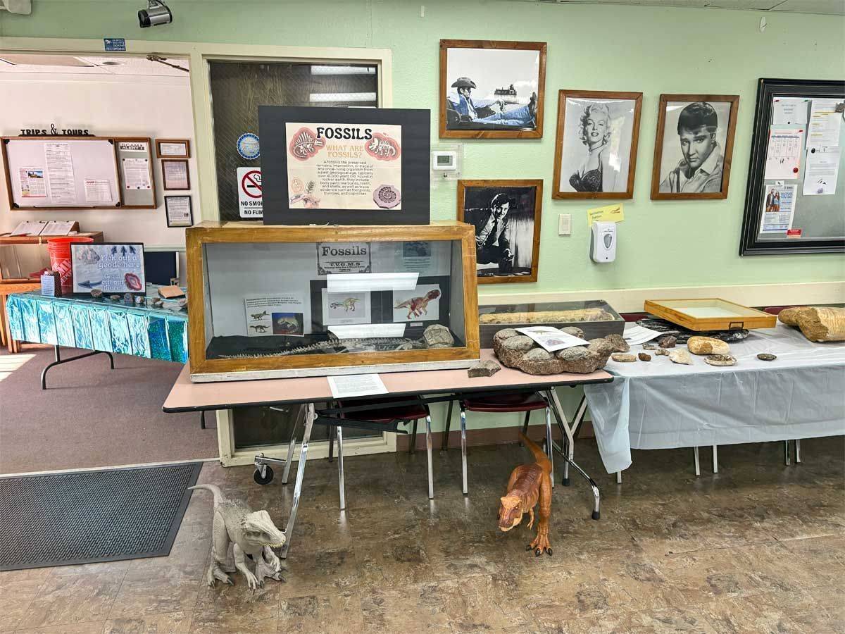 A display table was dedicated to finding potential sponsorships in our ongoing search for a larger facility to house our lapidary and jewelry workshop. We have been running out of space for a while but there is still opportunity for more members to use the equipment. Members interested in cutting rocks and creating gemstones such as cabochons or making projects such as polished slabs or almost anything made of rock gather on Mondays from 10-12 and on Thursdays from 12-2 pm. There are members who are happy to offer any assistance needed for those who are just learning to work with rocks and minerals. Instruction in finished jewelry techniques such as silversmithing and wire wrapping is also available. Attendance at the workshop does require membership in the TVGMS. Samples of the type of work done at the workshop was on display around the Open House.
