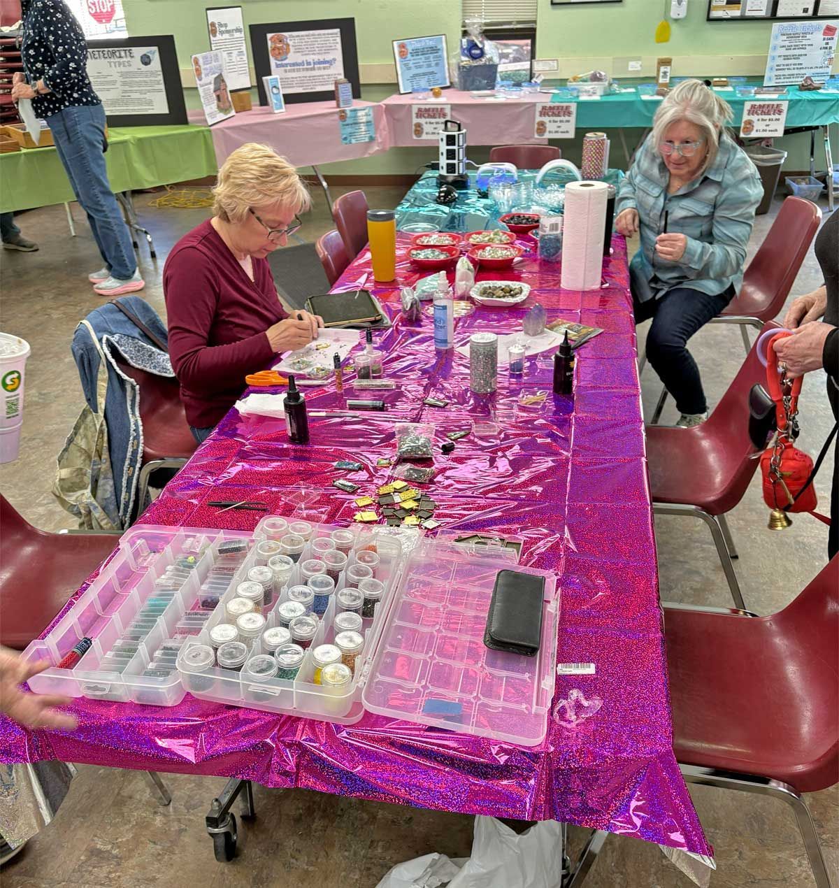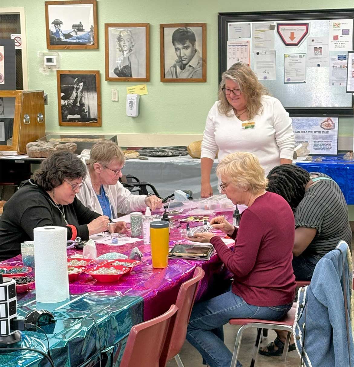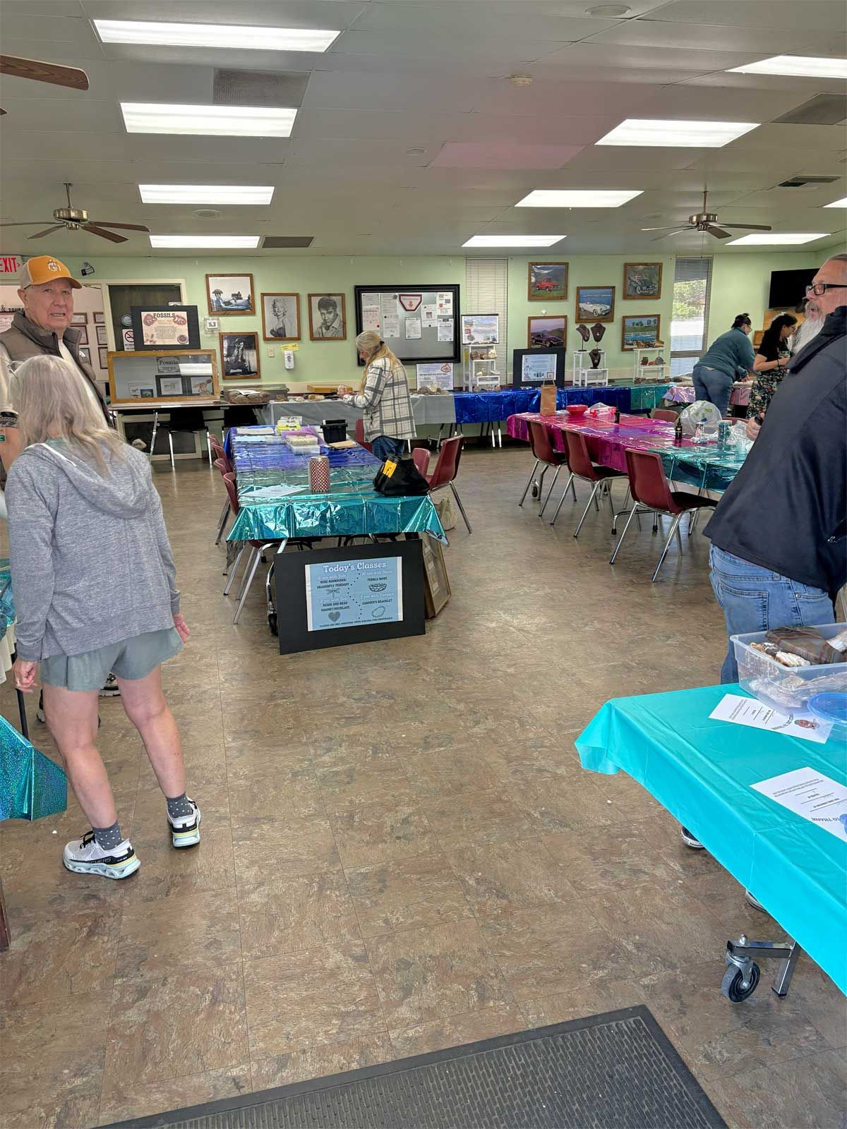 The TVGMS conducts field trips regularly approximately once or twice a month. A display of photos from some past trips was on one of the tables which were arranged in a circle around the main room of the Senior Center. Visitors travelled from display to display in a delightful parade all day long engaging with the club members who were there to answer questions and offer information. Membership is necessary for some of the activities such as the field trips and the club workshop. A group of new members were added during the day. We know they will enjoy the many activities the TVGMS has to offer during the year.