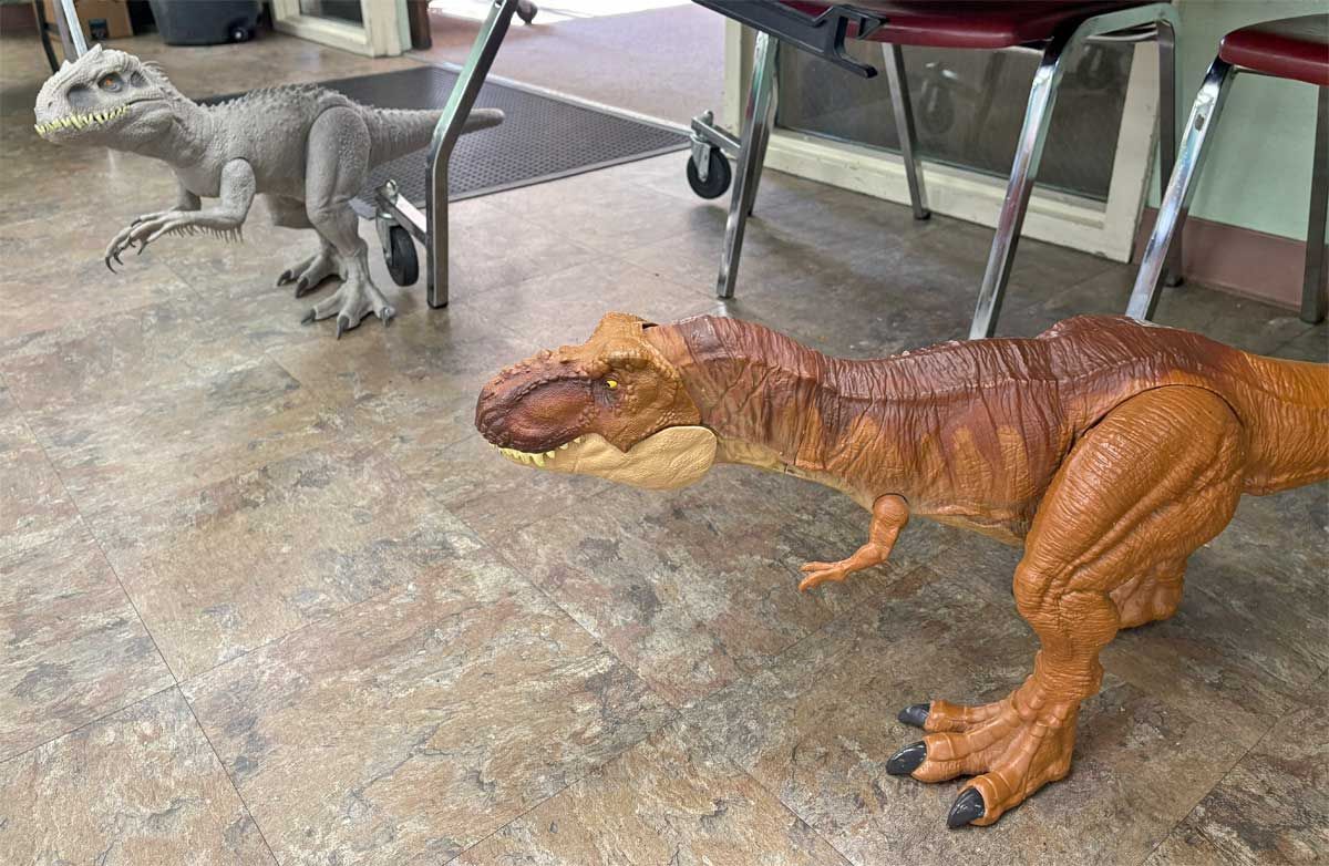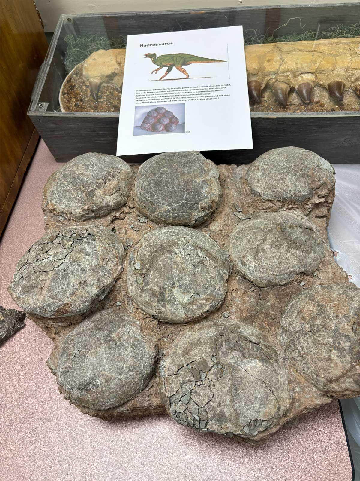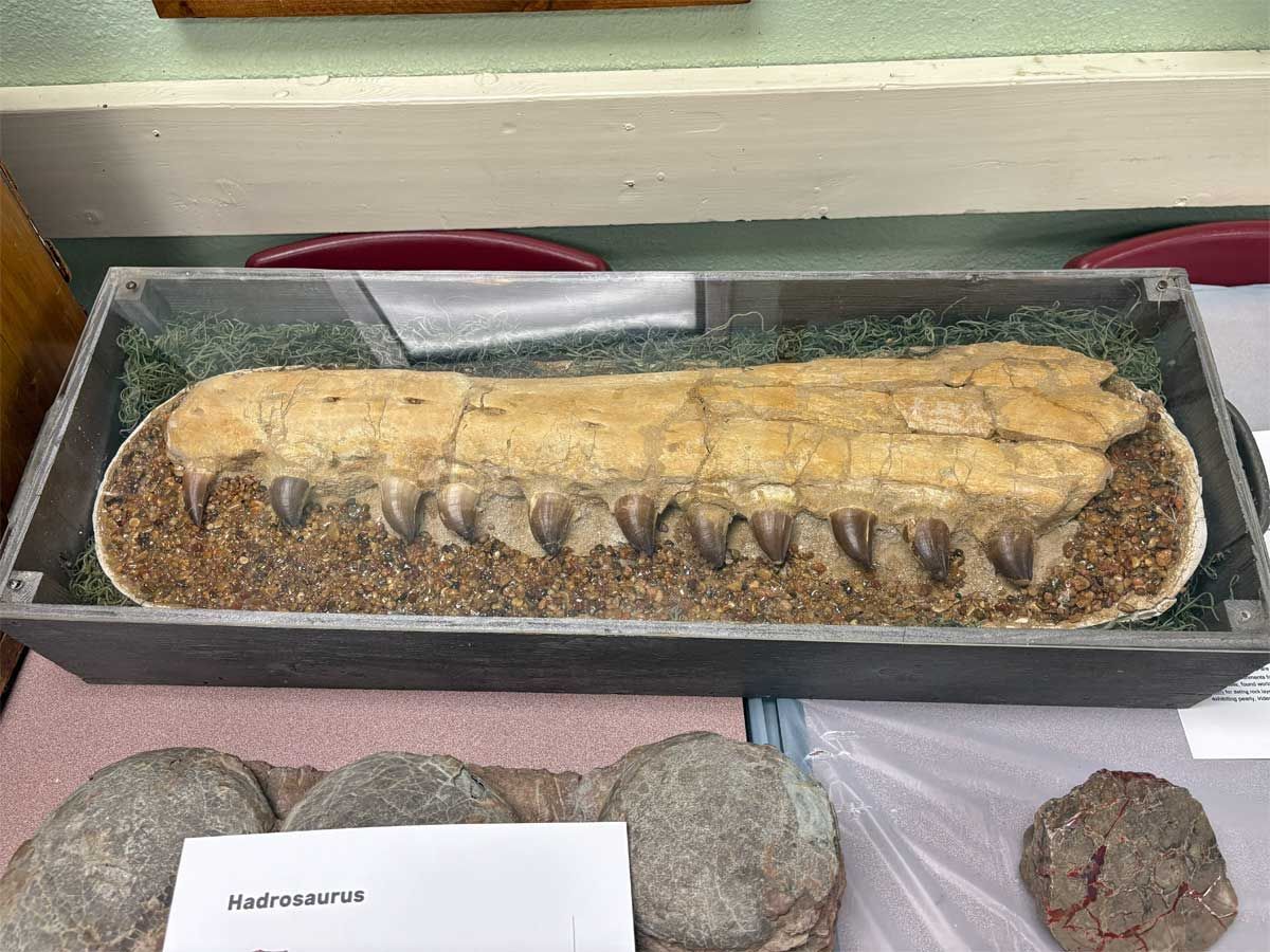 Another exciting display was our fossil section – John Bell and Ron Myrick brought in their personal fossil collections for display. The full fossil skeleton of a Psittacosaurus (parrot lizard) was a big hit with both kids and adults. Other fossils on display included a large ammonite and a fossilized nest of Hadrosaurus dinosaur eggs.