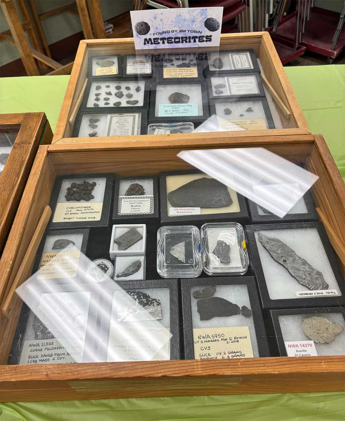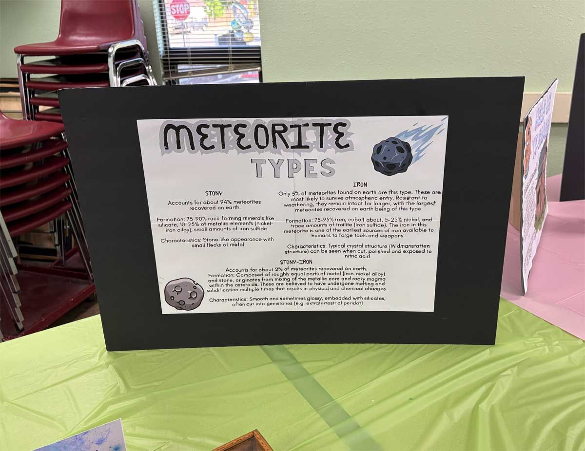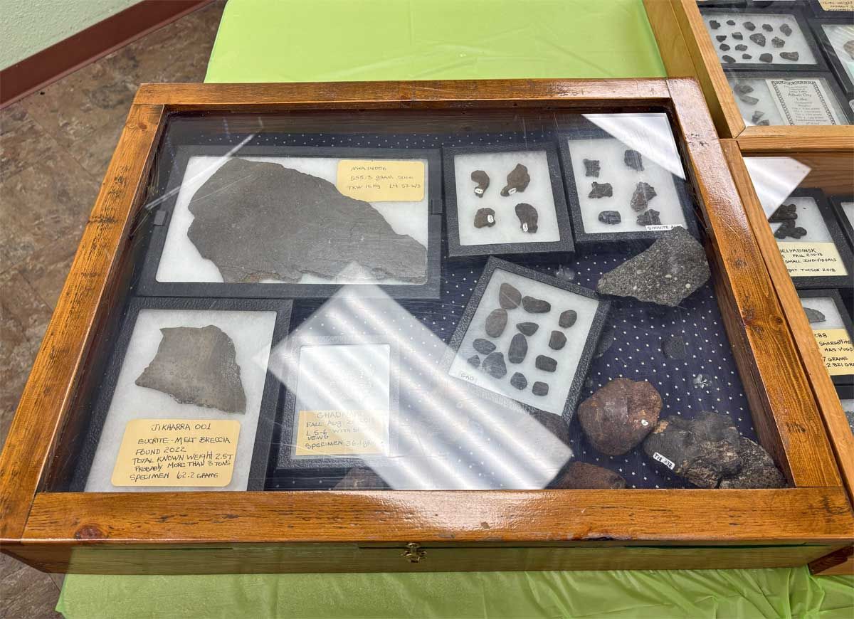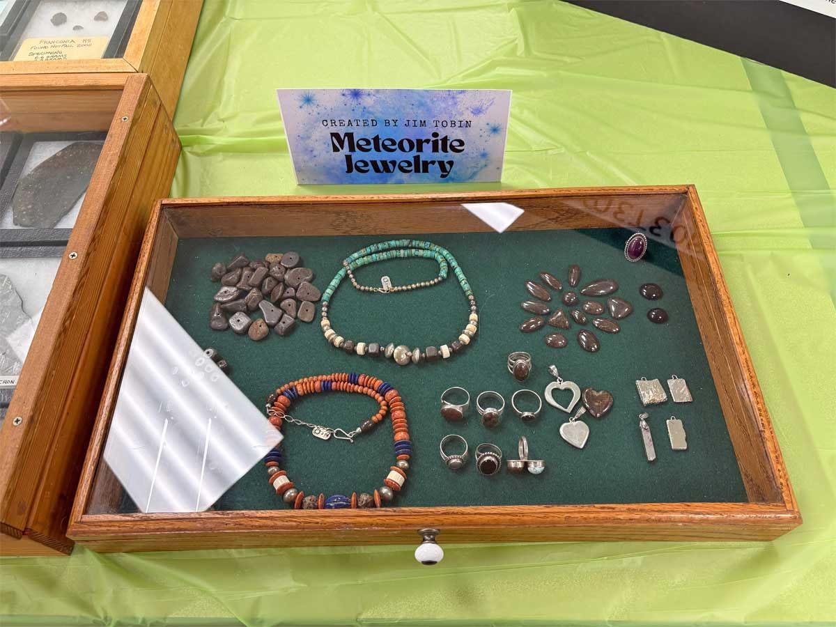 Tehachapi is fortunate to be the home of one of the foremost meteorite experts in the world and TVGMS is lucky to have Jim Tobin in our membership. He compiled a large, comprehensive meteorite display for the Open House and more importantly, was present to talk with visitors and answer questions.