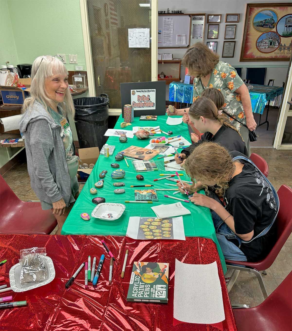 Free craft activities were offered that were enjoyed by both children and adults. Pet rock painting was a popular activity and the art that was made was astonishingly beautiful. Several children did all the crafts and were at the open house for the entire day having fun with the parents. Other crafts that were available to try were bracelet making, wire wrapping, resin pebble bowls, and resin stain glass pendants.